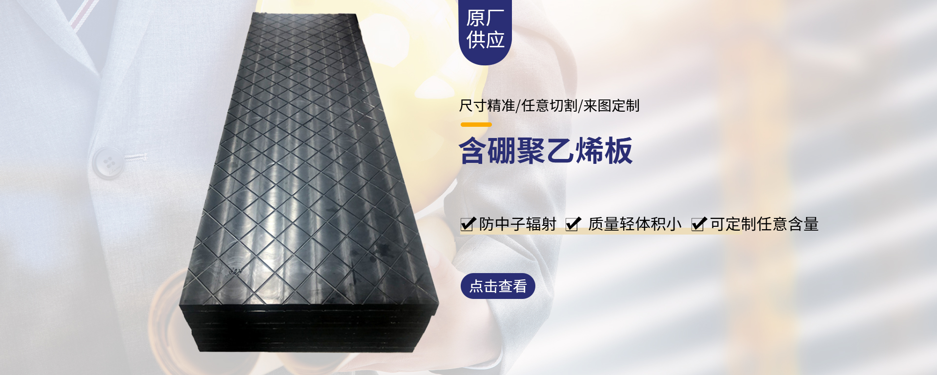 含硼超高分子量聚乙烯板是將碳化硼粉和鉛粉均勻地攪拌在高分子聚乙烯材料當中通過高速攪拌、捏合、塑化、熱...